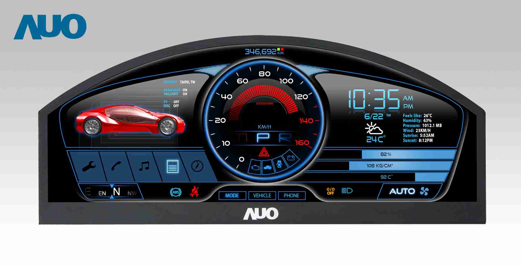 银河集团 12.3吋超高解析异型切割车用面板,,拥有流线外观及精细画质
